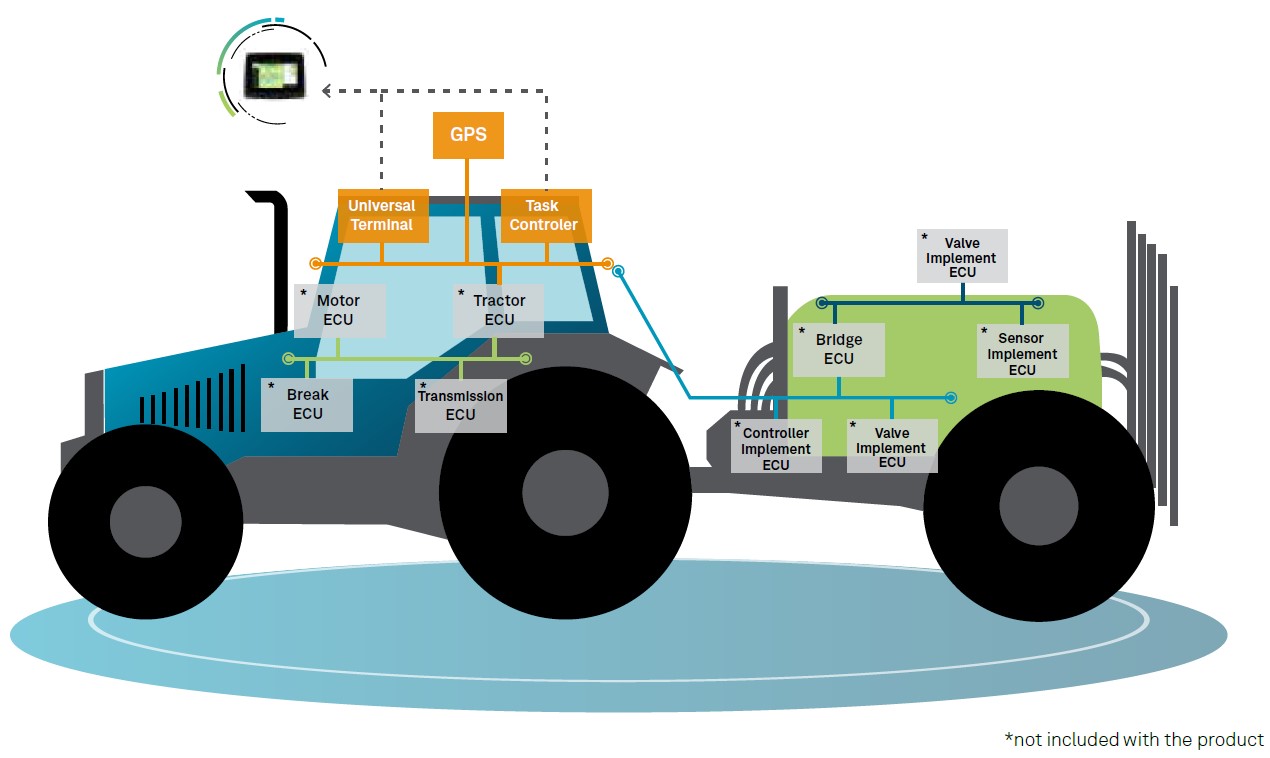 - Alkalmazás: ISOBUS-ready traktor, ISOBUS nélküli traktor (retrofit), ISOBUS-ready munkagép